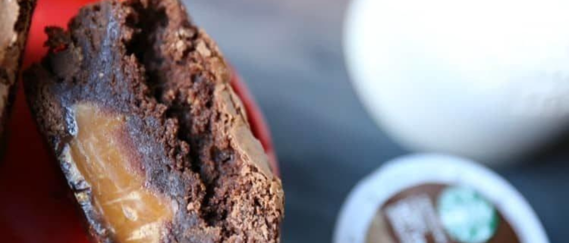 Caramel has to be one of my favorite sweet treats, combined with brownies OMG, knock me over, would you. These caramel stuffed brownie cupcakes are seriously delish! And, huge thanks to Starbucks for sponsoring this; not only did they go great paired with their hot cocoa, they would be perfect with a cup of coffee!