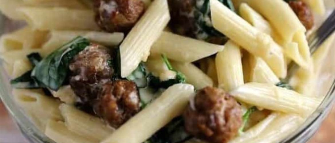 If you ask me, the Sausage Meatball & Spinach Alfredo Recipe is a win-win! It’s perfect for dinner, whether you’re getting home a little late because practice ran late, you’re in a pinch, or you just want something everyone can agree on without spending the whole evening in the kitchen.