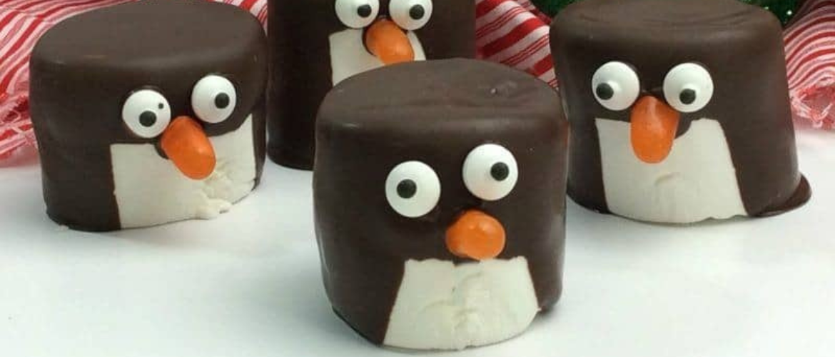 - Place the chocolate-covered marshmallow penguins in the fridge for about 10 to 15 minutes, or until hardened.